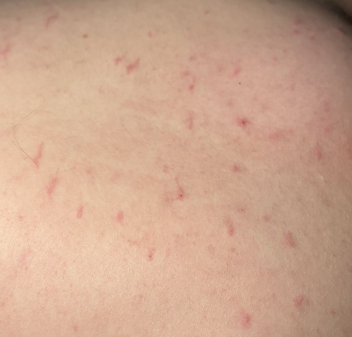 На чесотку не много похоже , но она чешется вечером и ночью только.