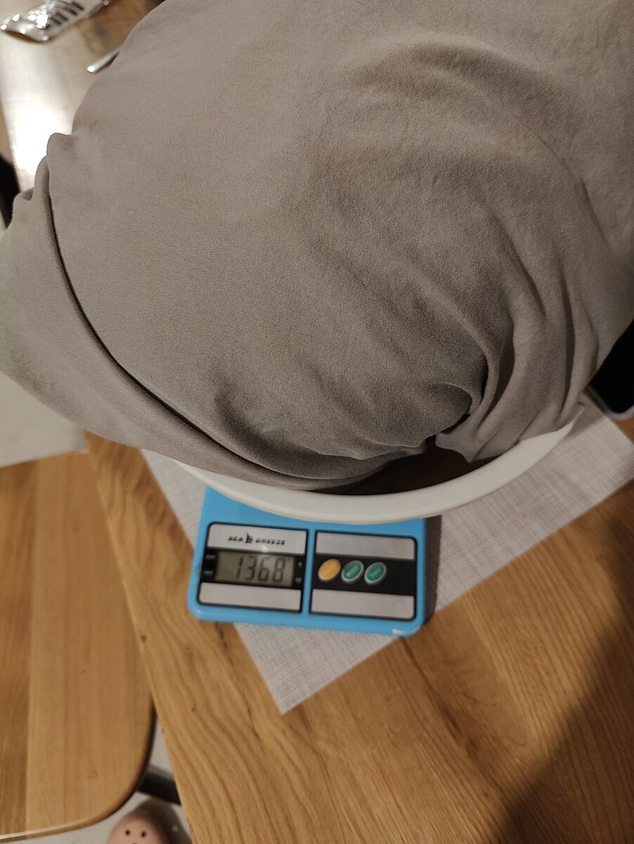 Ну вот мое выстиралось, высохло, никакого запаха, кроме моего ополаскивателя. Взвесила кстати. Вот это я понимаю сатин) Для сравнения взвесила одну из Юсковских простыней (есть еще их комплекты) - почти в 2 раза легче и тоньше. Размеры одинаковые