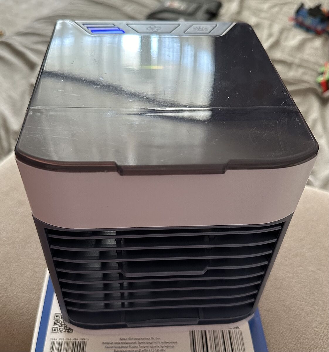 працює вже майже годину, павербанк розрядився аж на 3%. заявлено шо ємності з водою вистачає на 10 годин роботи, але за 10 годин вода вже не буде холодна, тож певно краще потроху доливати льодяну.