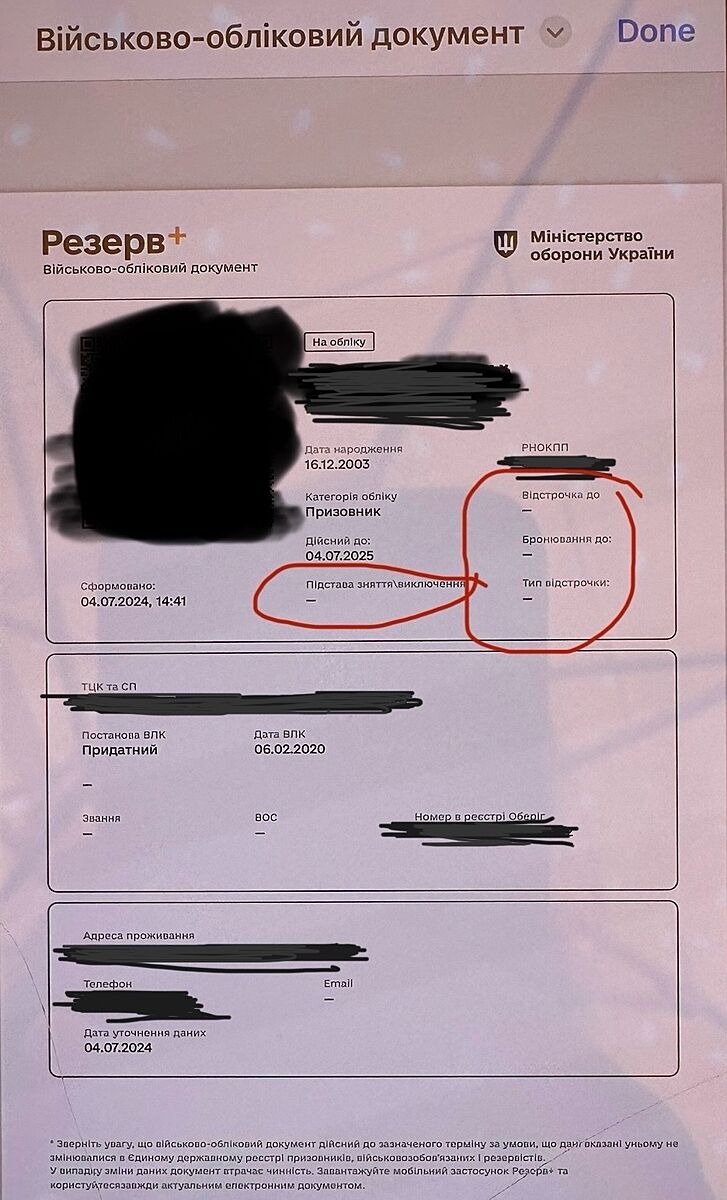 Вчора син обновив дані в резерві. Він студент стаціонару, 20 років. Тобто в нього відстрочка. Але в додатку висвітилось отаке ( фото додаю). Тобто він призовник, але броні в нього нема, відстрочки нема і тд.