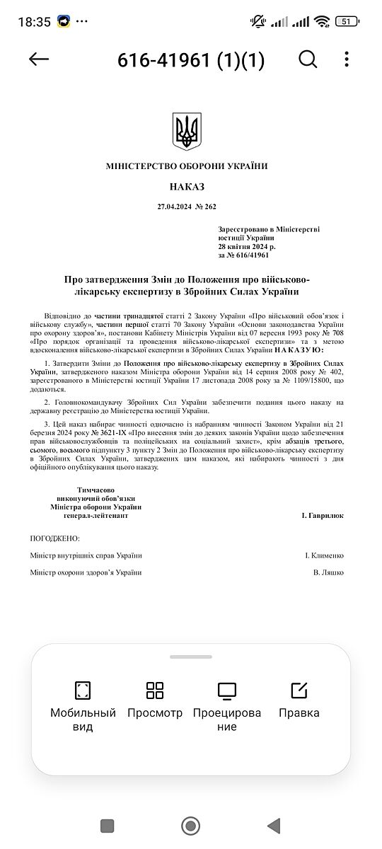 Мне нужно ознакомиться с болезнями которые не подлежат мобилизации, у меня только вот такой есть в апреле который приняли, есть ещё новый или от это отталкиваться?