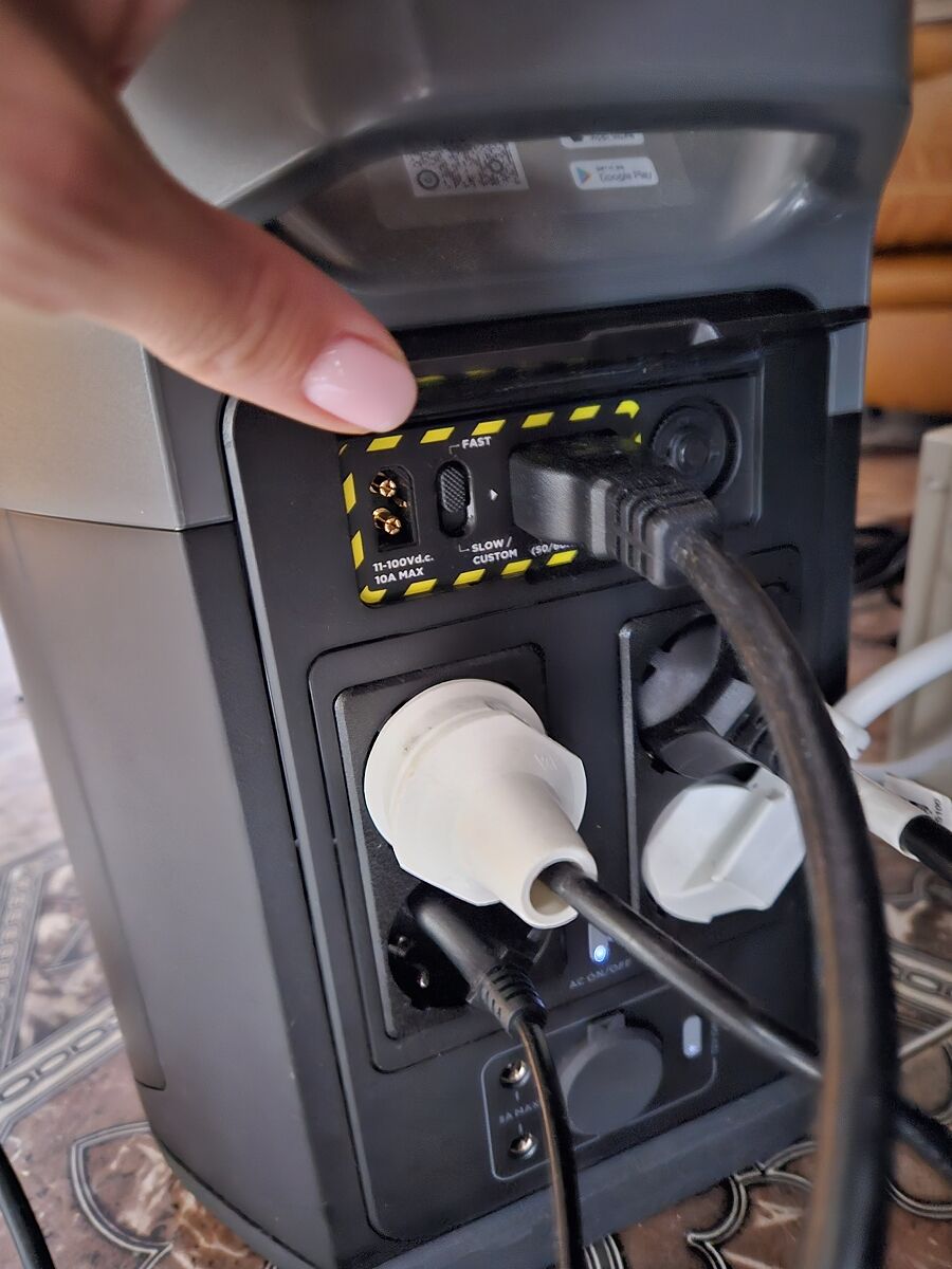 Штекер зарядки екофлоу в розетку, штекер переноски/девайсу в екофлоу, та і все. Я так рівер використовую. Як буде електроенергія, він сам підзаряджатиметься, але загальний строк служби може знизитись, через зношення