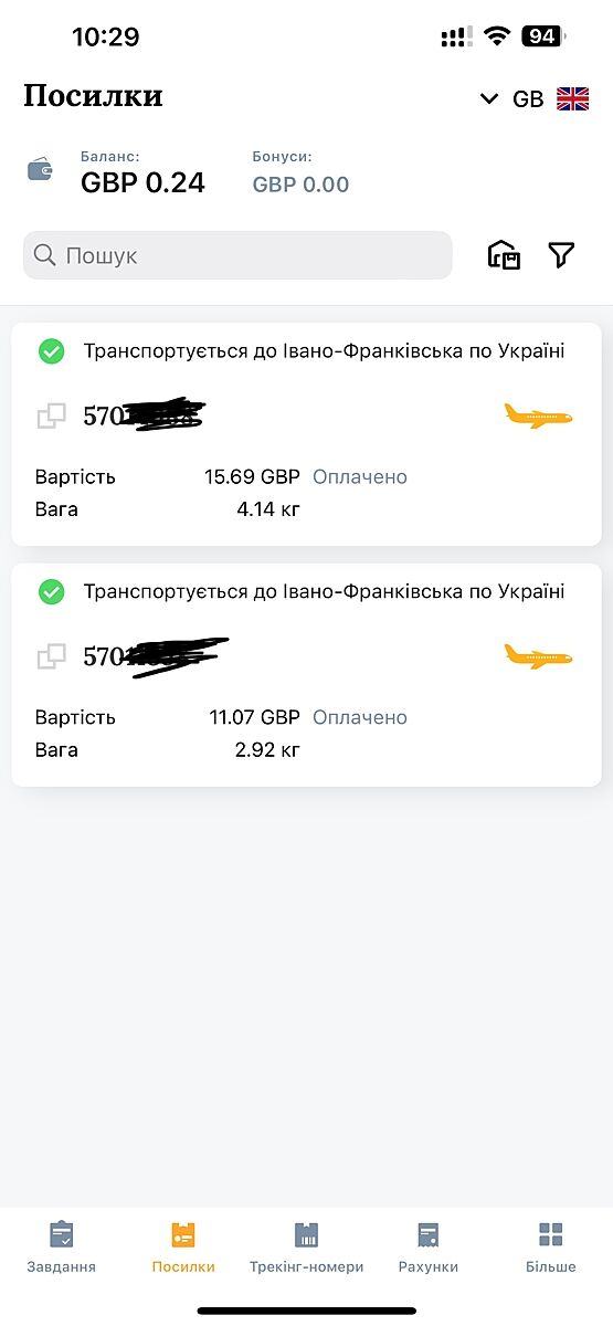 Ситуація наступна: одночасно замовляли з мамою посилки, всі вони їхали однаково по часу до Польщі і тд. Знаходимось через вулицю один від одного. Але чомусь моя посилка транспортується в наше місто і я не маю ніякої накладної, а у мами вже посилка на нову пошту прибула, а статус стоїть на ЮЕ минулий від мого. Мені очікувати тннку?)) бо так уже два дні висить. В додатку НП на мій номер нічого немає.