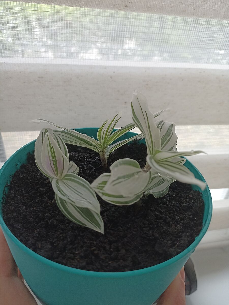 У традесканции небольшой корень. Можете потом ещё настричь верхушки на черенки и подсадить для густоты. Любит яркий рассеянный свет и опрыскивание.