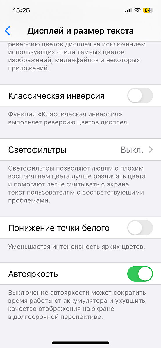 почему в айфоне при полном режиме яркости, она все равно тухнет?