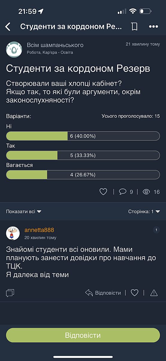 Так там найбільше відписувалися ті, в кого діти в українських вишах і змушені оновити дані