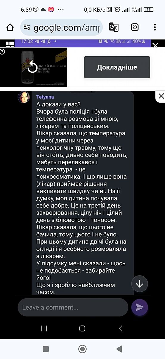 Я дитину ледь довезла, знесиленого, з постійною нудотою, болем в животі і поносом. І це вже на 4-й день після захворювання. Ним ніхто не займався, чайком зі звіробою поїли, коли потрібна була медична допомога. Але ж чайок дешевий, якщо не сказати безкоштовний.