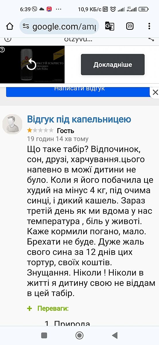 Пишіть відгуки на всіх можливих ресурсах. Можливо хто знає, яку тут створити тему про табори, де б всі могли залишити відгуки. не буде бажаючих - самі загнуться. Хочеш оздоровити дитину, щоб вона перепочила від війни і оздоровилася, а по факту виходить ще гірше, ще й за наші гроші. Як це жахливо, коли на дітях так заробляють.