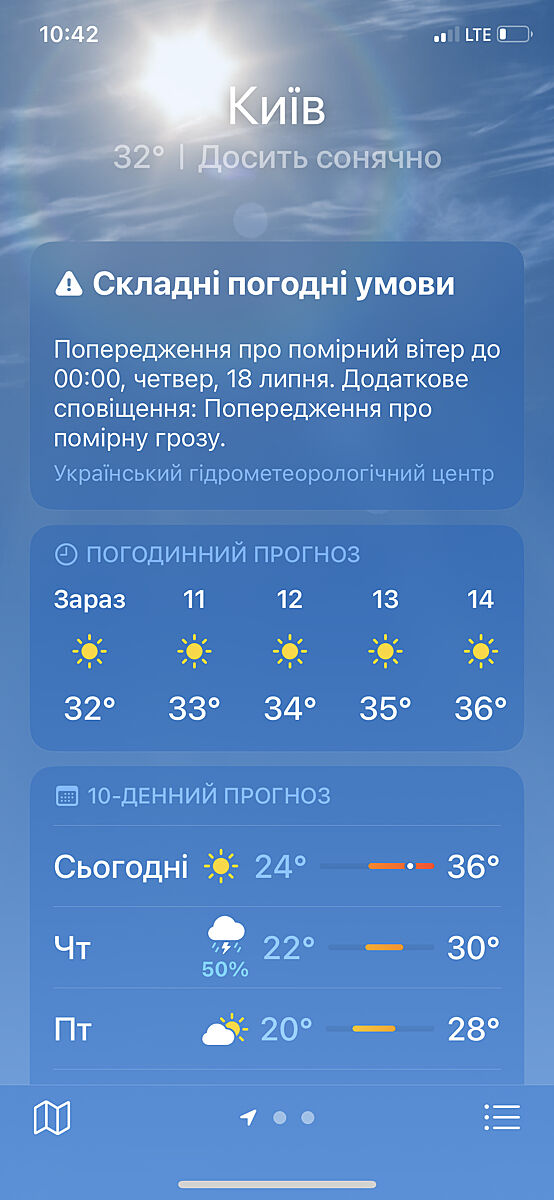 Може завтра нас порадує, по прогнозу 50%, що буде дощик 🙏🏼🥹