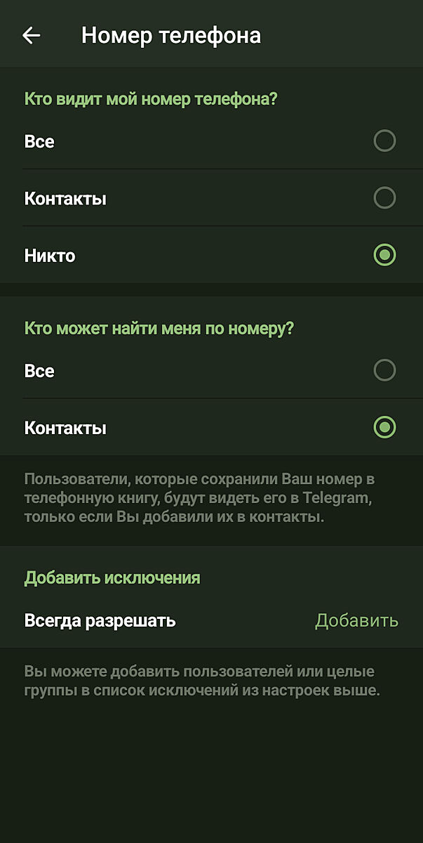 В настройках конфиденциальности нажмите посмотреть, кто может видеть Ваш номер.