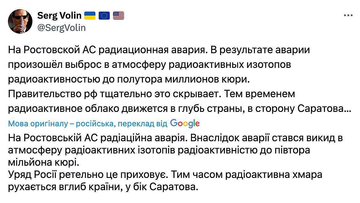 Вместо того чтобы обсуждать внутренние проблемы, делаются вбросы про радиационную аварию в РФ.