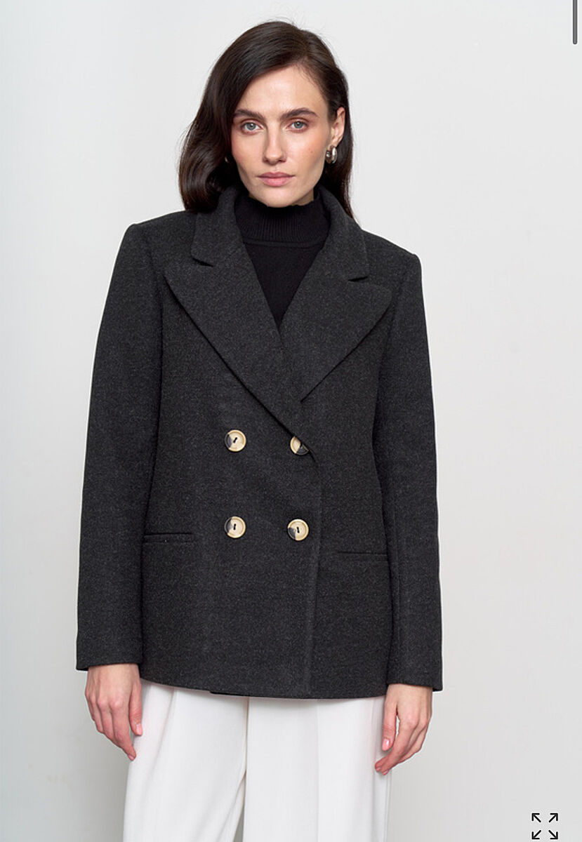 У меня есть подобное черному, но длинее немного, с золотыми пуговицами, хлястиками на рукавах, грубое такое.