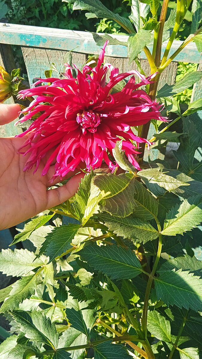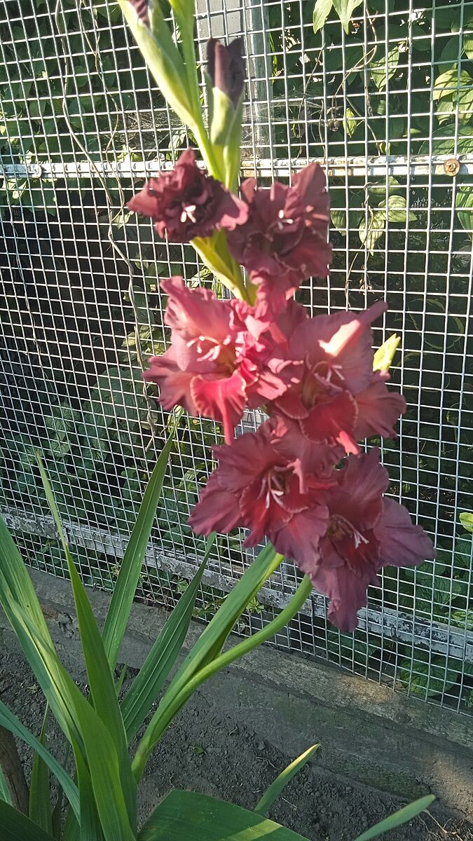 йшла цієї весни на базарі повз квіти і купила за 5 грн цибулинку гладіолуса. Брала ’кота в мішку’, вирос, розцвів - майже чорного кольору. Дуже гарний ) Також свекор дав жоржин (в нього дуже велика колекція), і одна з них старенький сорт ’Червона москва’ - причудова, я така рада що квітнуть, бо цього року карлікові кури дуже добре їх пощипали (