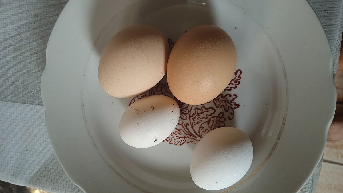 Я їжу не фоткаю, але це фоткала яйця малі на продаж, видно співвідношення нормальних і карлікових яєць