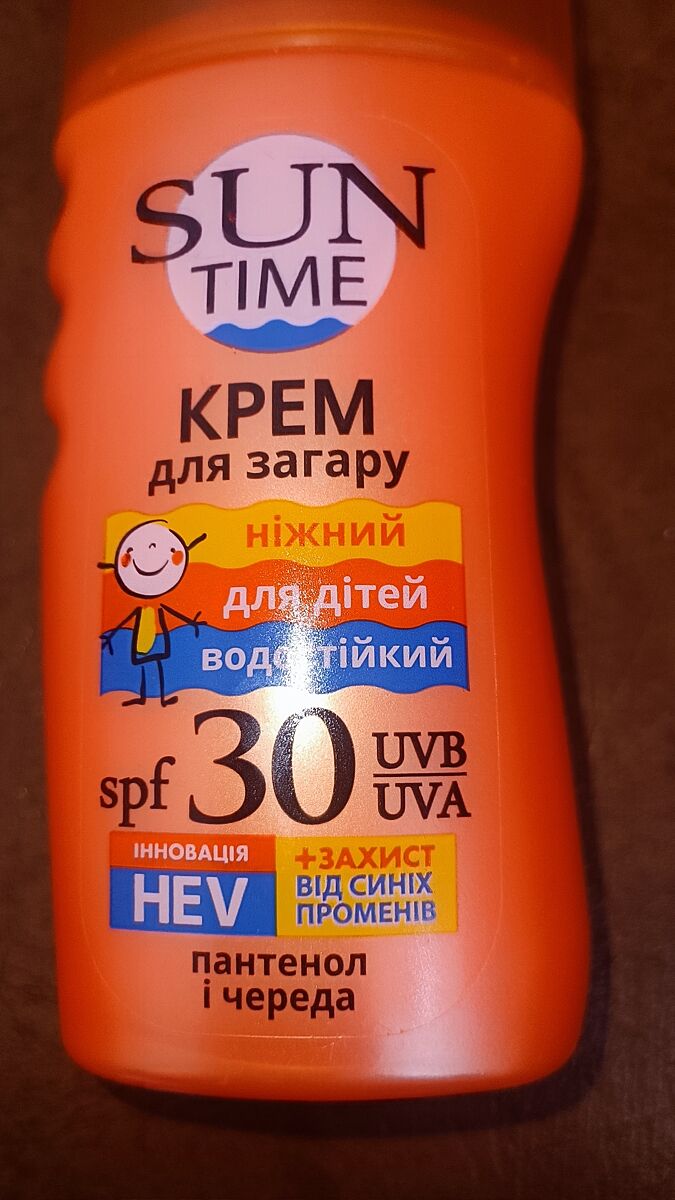 Ну, крем для тела, чтоб не сгореть, на море подобным мажутся.. Если первые дни, и белокожая, то лучше 50, у Вас 30, не сгорите, загар возьмётся немного...