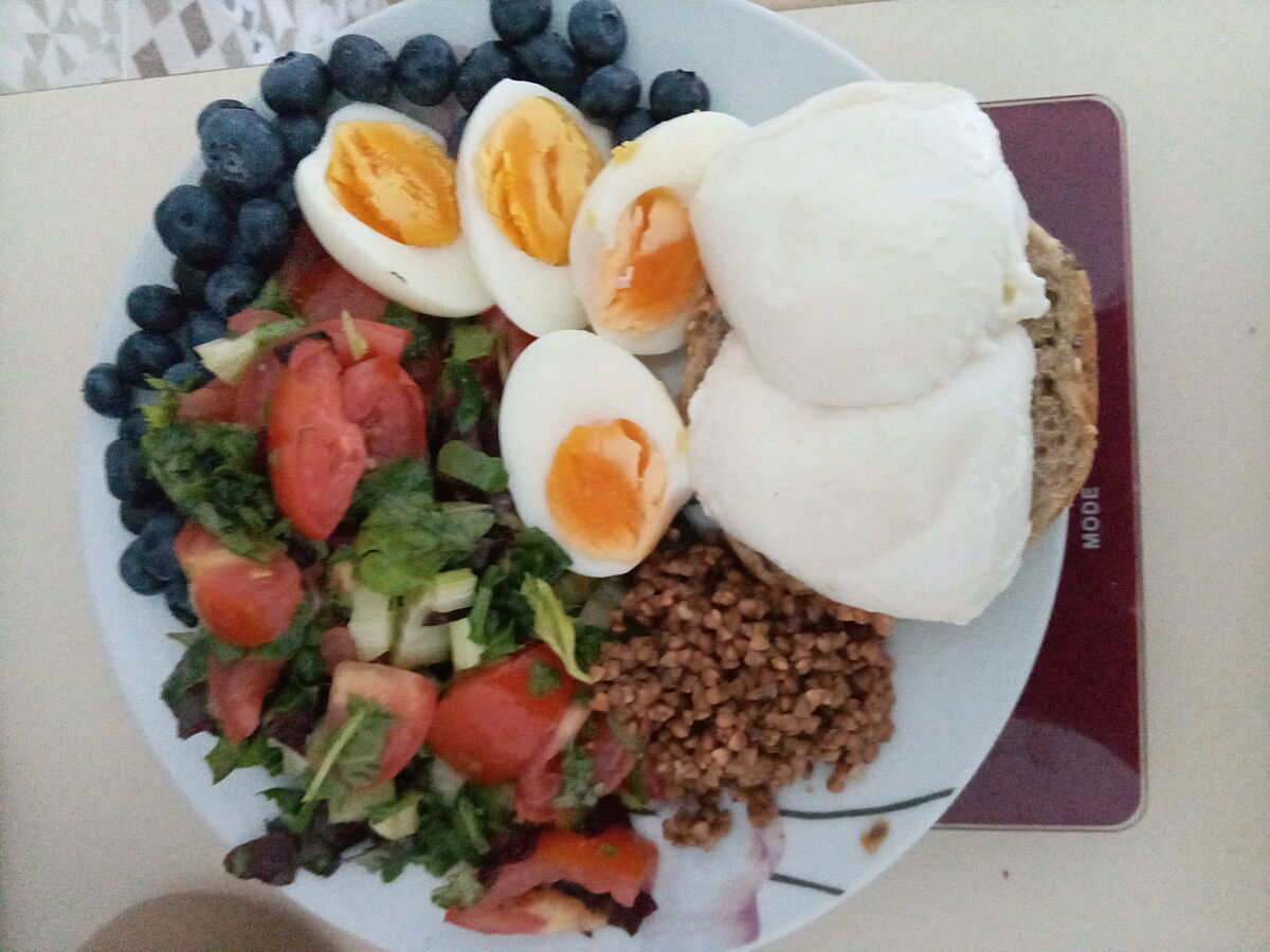 кофе с молоком убрать и голубику на другую тарелку положить) а так все ок