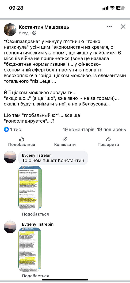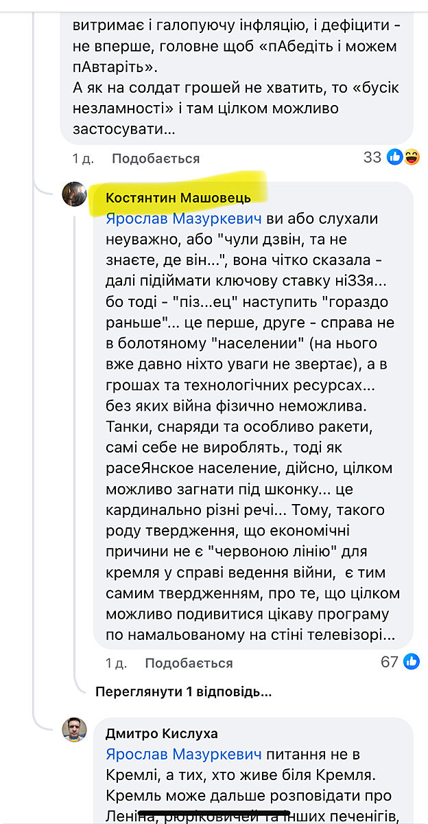 Машовец 3 поста сукупно написал. На его странице есть, их надо смотреть все вместе, уловить о чем он,