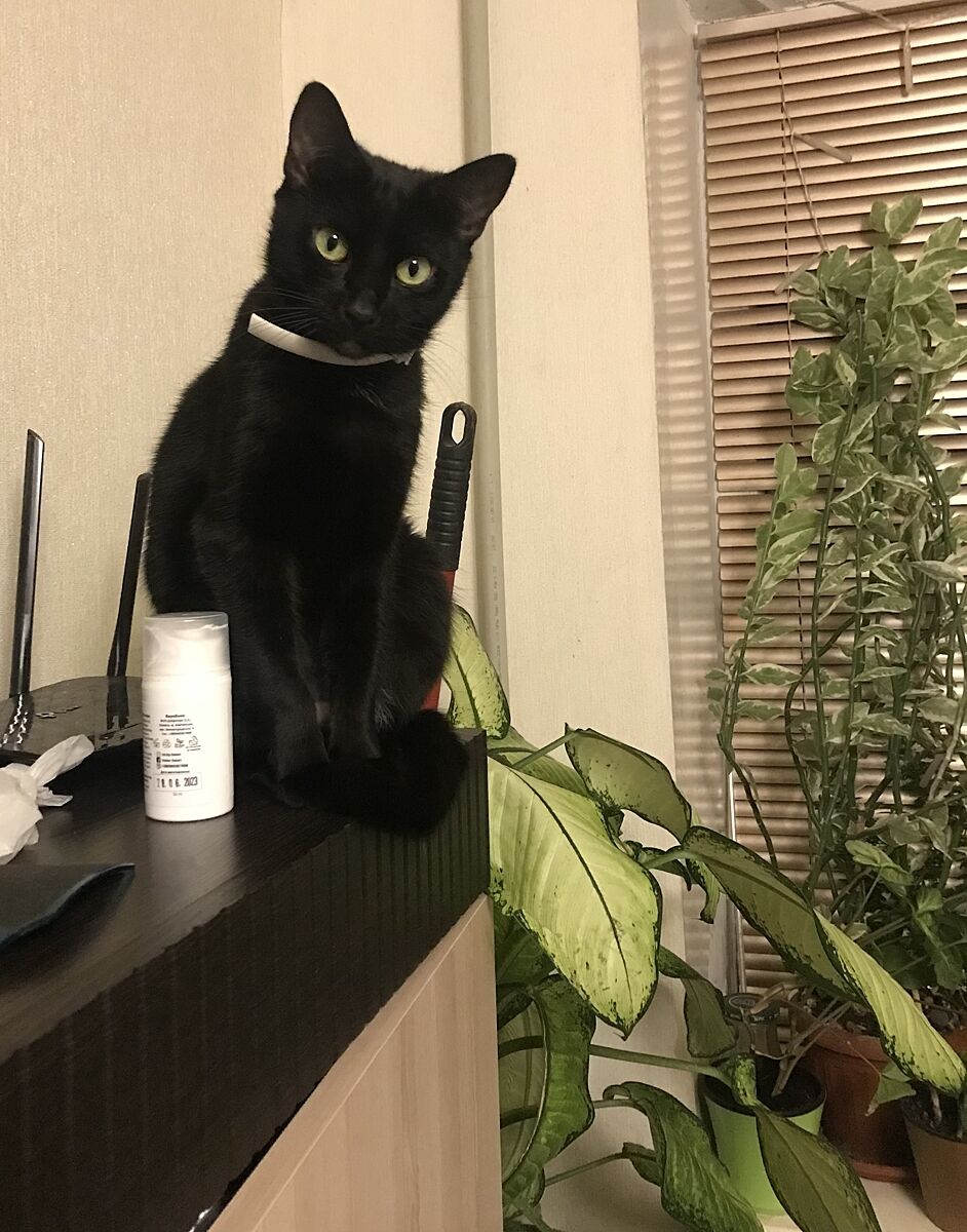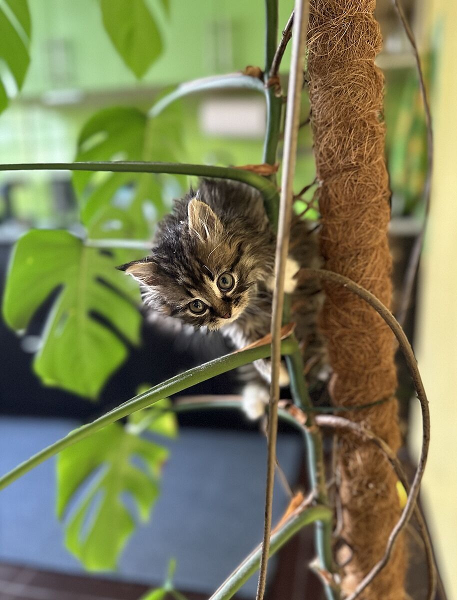 А, была громадная монстера. Но вот это чудо, пока было маленькое, ее угробило полностью. Сейчас заново ращу, из остатков прежней роскоши) К счастью, у кошки пропала тяга к цветам.
