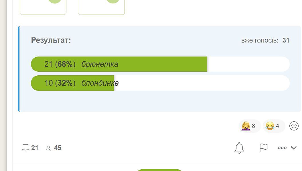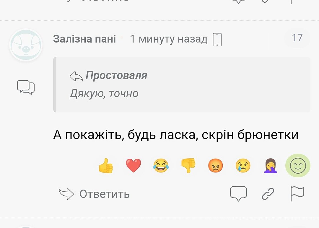 З чого ви взяли, що «в реакціях у всіх брюнетка»?