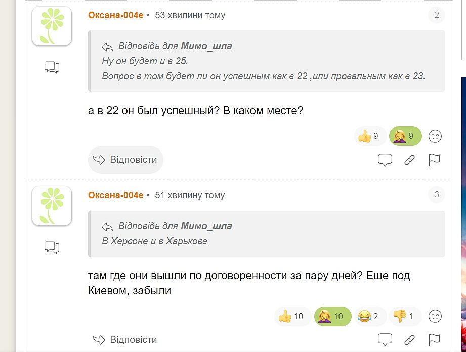 Ні Оксана обесцінювала саме Харківську операцію і звільнення Херсона.