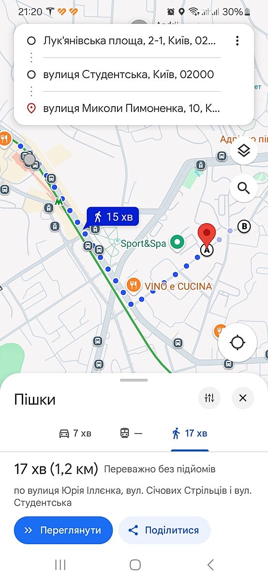 Ось вам оптимальний піший маршрут. Ваша кінцева точка - точка В на карті.