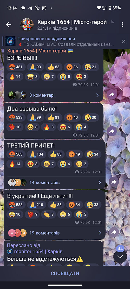 Знаєте, тривоги це звичайно тривожно, але в нашому телеграмі зазвичай ось так , в тому і різниця.