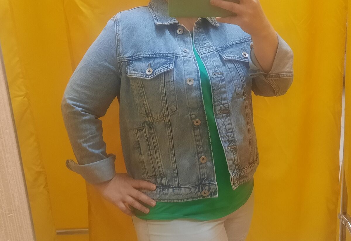 Джинсовка это классика. Просто она немного маловата на вас и смотрится куцо. Поищите более объемную, может в мужском разделе
