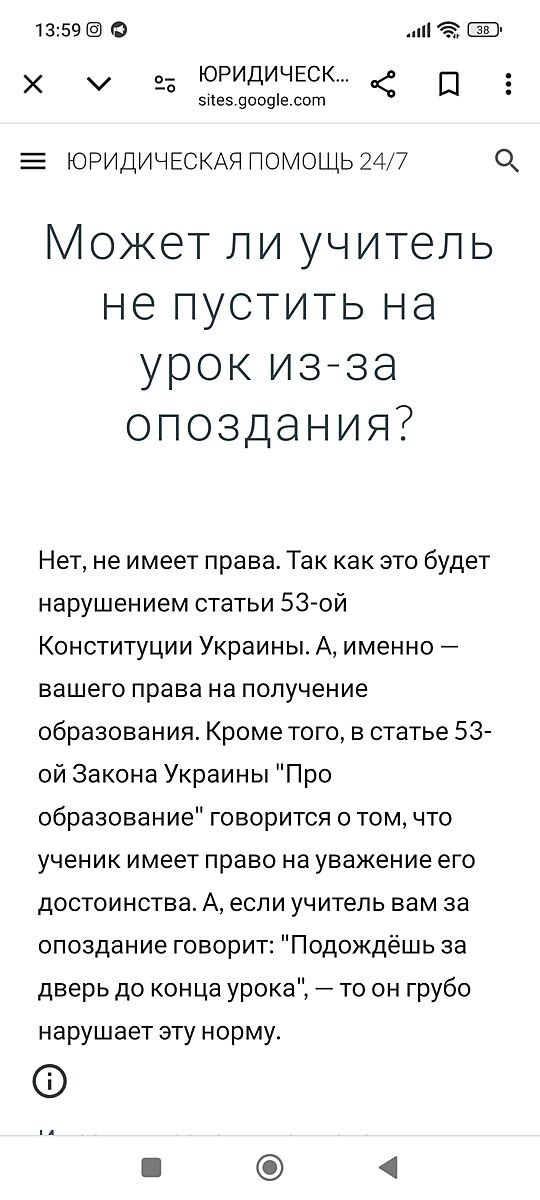 Читайте внимательно что учитель не имеет права выгонять опоздавшего ученика с урока.