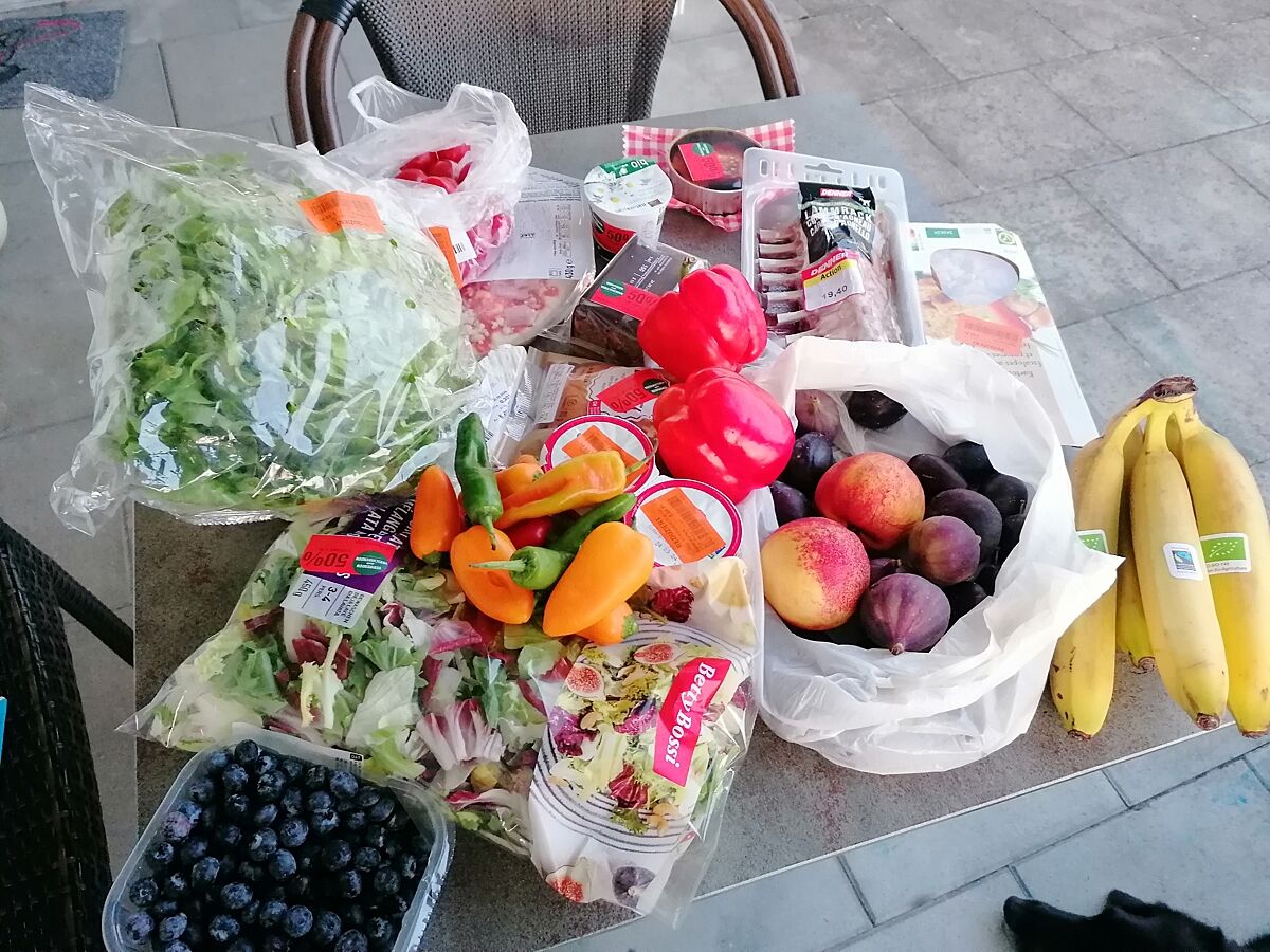 Есть такая опция too good to go, концепция заключается в том что в конце дня в магазинах и кафе остаются продукты или готовые блюда, срок реализации которых истекает в ближайшее время, через приложение too good to go человек может купить пакет продуктов за очень маленькие деньги, не зная заранее что именно в этом пакете и забрать его непосредственно перед закрытием магазина/кафе. Я в Швейцарии регулярно пользуюсь такой опцией, на фото бокс с позавчера, из трёх ближайших магазинов, за три бокса заплатила 17 франков, реальная стоимость этих продуктов примерно 80 фр, часть покупок ещё не поместилась на столе. Все в абсолютно нормальной кондиции. Считаю это хорошей идеей если бюджет ограничен и человек не привередлив. Это приложение работает в большинстве европейских стран