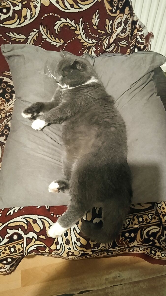 перші три фото це середній наш красунчик (в чоловіка в телефоні сотня фото, бо це його улюбленець), останне фото він маленьким з самим старшим котом і є ще кішечка, але фото лише таке, бо дама не любить фоторафуватися. А це фоткала мамі, що Каська вдома після ветлікарні лежить страждає. Всі з вулиці