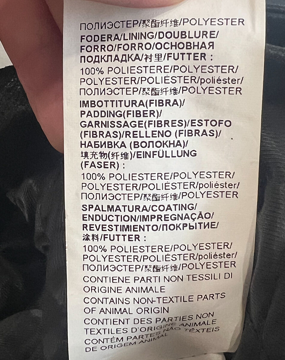 при чем тут бирка? может там манжеты из ткани или еще какие элементы и они полиэстер