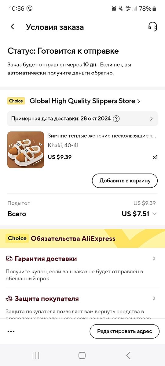 У меня написано, что осталось 9 дней, при этом была гарантирована доставка в течении 9 дней и самая поздняя дата 11/10. Я сижу и жду, что дальше будет.