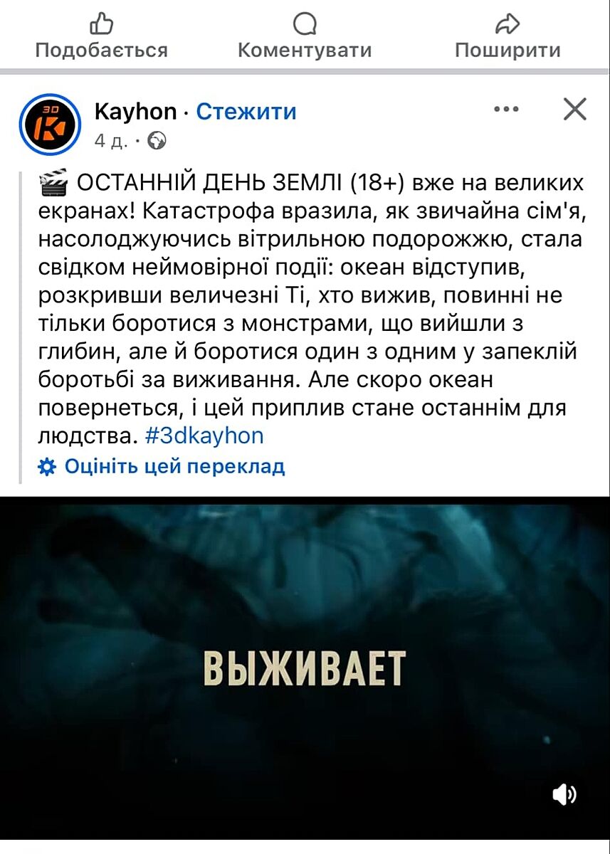 В кинотеатре значит не будет его, если есть в онлайн, правильно я понимаю?