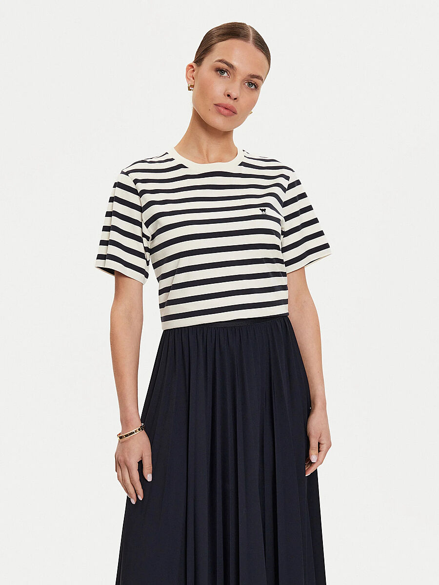 скидки голову вскружили, хочу две. но в первой смущает немного принт (не детский ли он), во второй переживаю что похожа на тельняшку. Однотонные очень скучные, их отбросила. решила посоветоваться, со стороны виднее