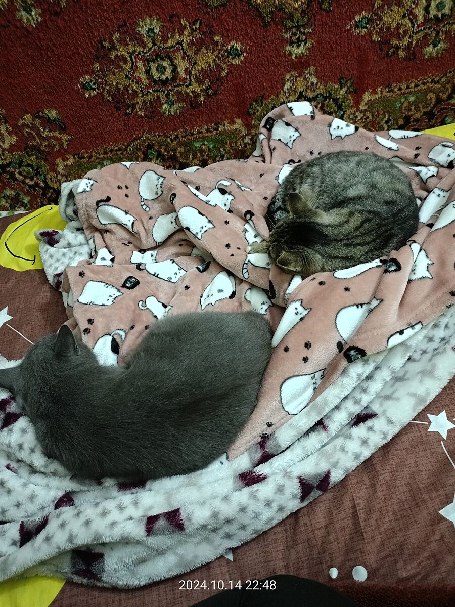 Сірий в полоску то котик Боня , сіра то породиста киця Мася, незнаю яка порода, і чому вона опинилася на вулиці. Прибилася до нас на роботу, ми спочатку її годували, вона приходила спати до мене в кабінет, потім я вирішила її забрати додому бо вона дуже захворіла, возили до ветеринара, в неї був ацетон, пієлонефрит, запалення легень, не їла тиждень і не пила воду, думала не виживе, але дякувати лікарю видужала, я біля неї як біля малої дитини бігала, колола уколи, відпоювала, таблетки давала. Хороші коти, на осінь поправилися, Мася від’їлася після хвороби, зараз ганяє по хаті мишей пантрує, вже дві миші в хаті зловила. У нас жити черга з бажаючих))