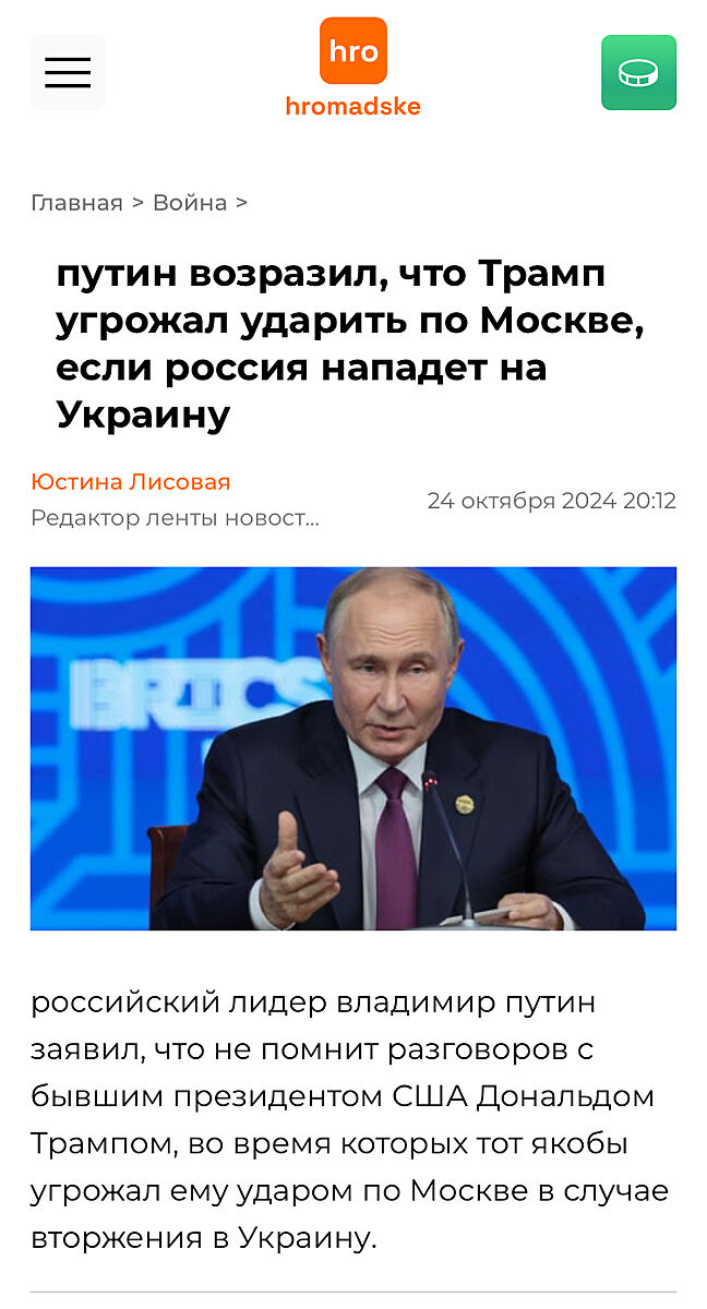 Доречі, теж читала, що ця риторика була заготовлена для виборців у певному штаті, які негативно налаштовані проти путлєра.