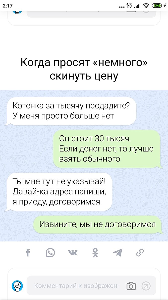 Когда-то выносила самовывозы покупателям, в холл бизнес центра. Много странных было, но одного запомню на всю жизнь. Я вынесла ему электробритву. Он крутил ее, смотрел, потом в один момент взял и стал ею бриться. Потом положил на стол и сказал ’не подходит’ и ушел. А у меня на руках товар индивидуального пользования, который я больше не могу вернуть в продажу.