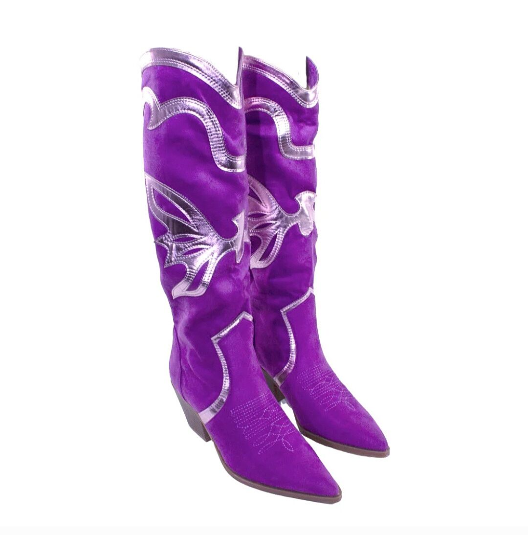 Помогите найти фиолетовые кожаные сапожки под мою курточку.