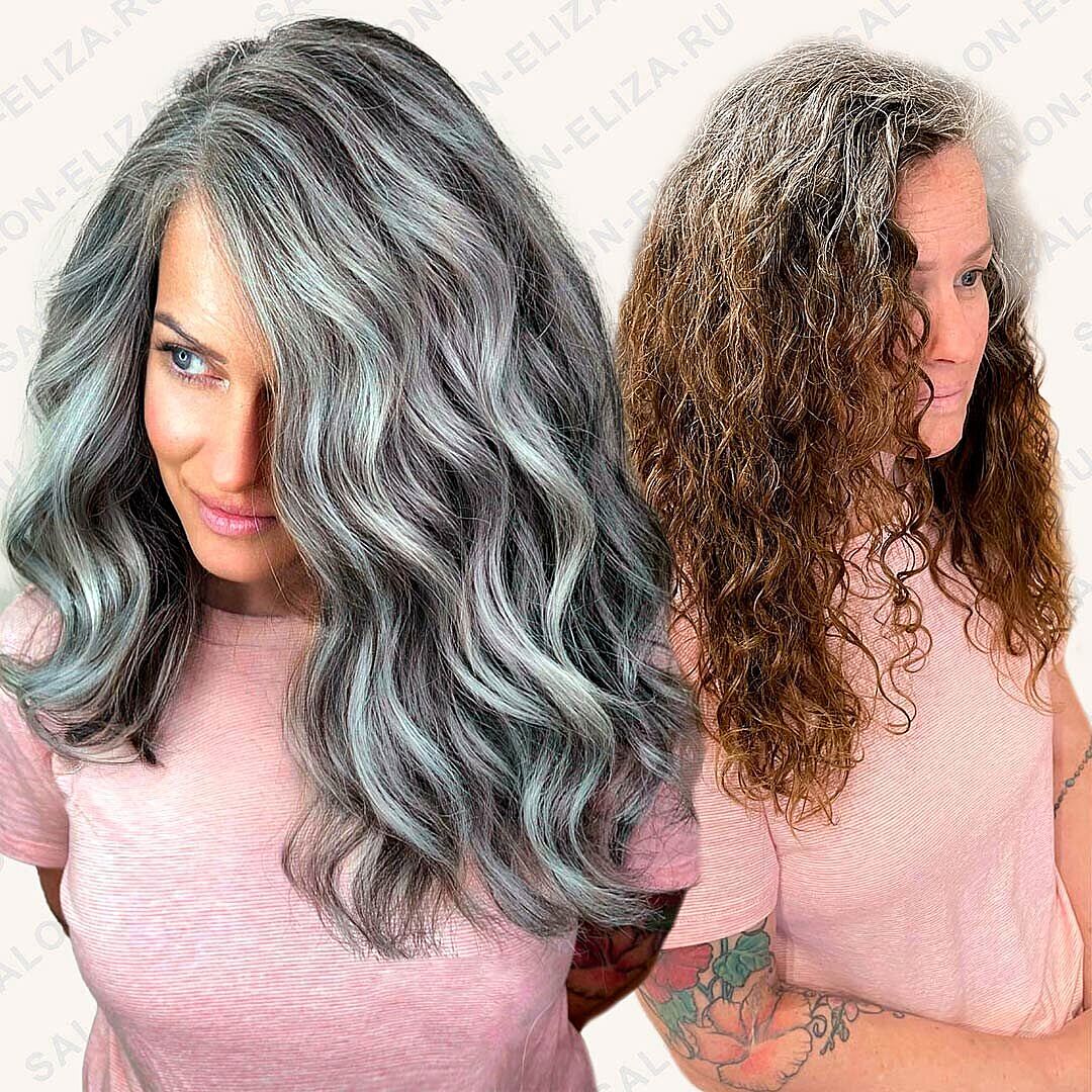 Вот не красилась 3 месяца и очень много седых , но я все тонирую синим шампунем, тогда мои на этом фоне органично смотрятся