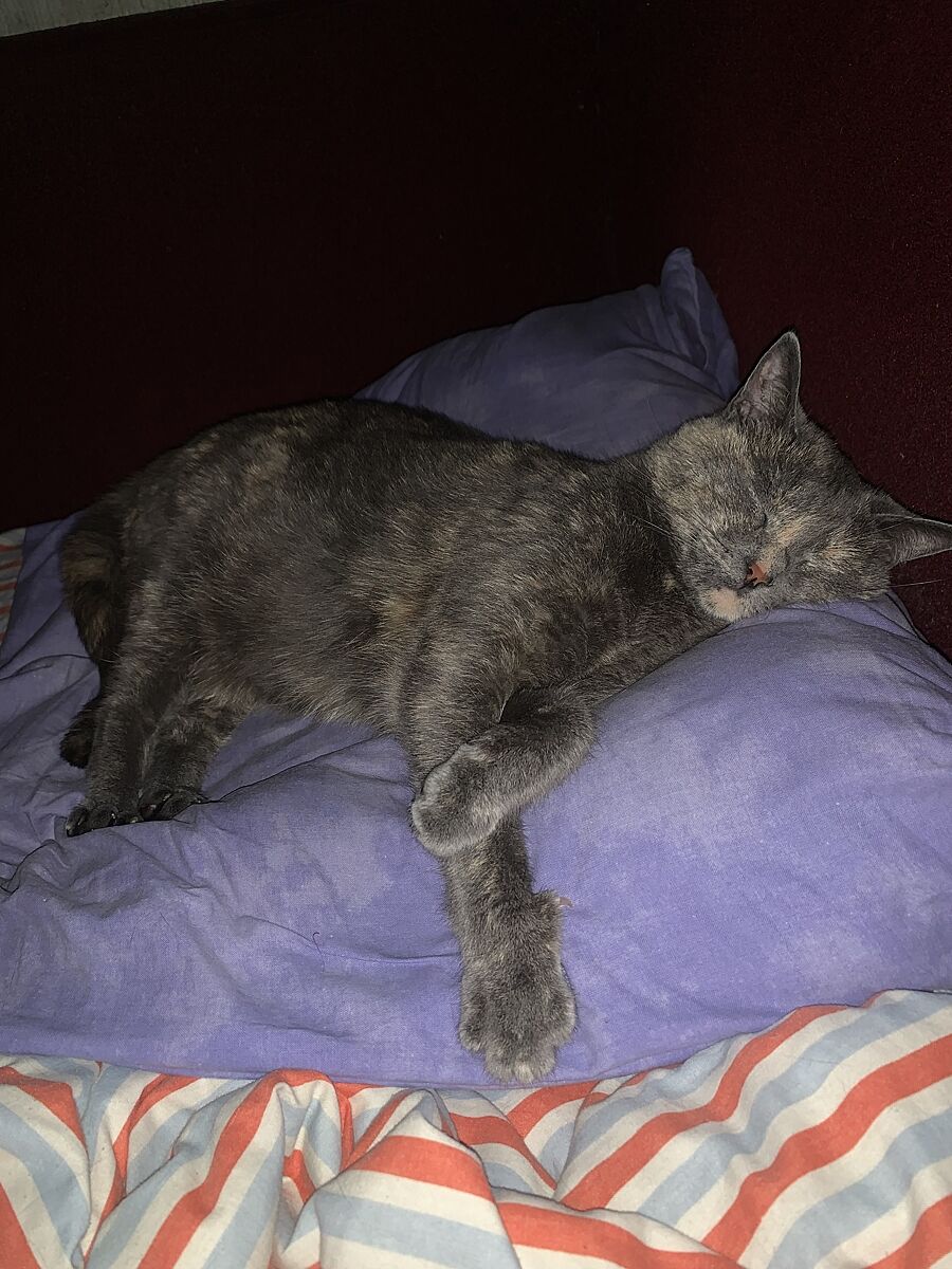 Мне сейчас ужасно, три прилёта за 5 дней. Ложусь спать, кошечка приходит, спит на мне, урчит и мне легче. Невозможное счастье. Жалею,что раньше не знала его! Сейчас все котики на территории на работе мои любимые, кормлю их, хочу стерелизовать, обнимаю и целую! Это моя любовь на работе)
