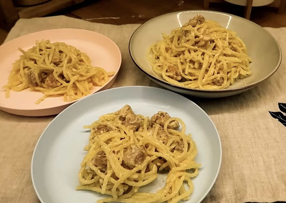 Гречана каша, тушковані пупки, салат з помідорів+огірок+ цибуля стерлінг + домашній майонез. На десерт дитині - какао , мені -кава, обом - кекс і цукерки Вечірній Київ.