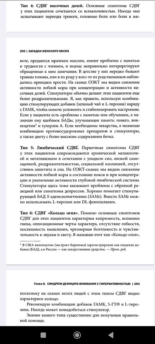 Вот скрины. Психотерапевт. Изучал на МРТ всю жизнь головной мозг и разобрал по типам СДВГ. Глава 8 книга Тайны женского мозга.
