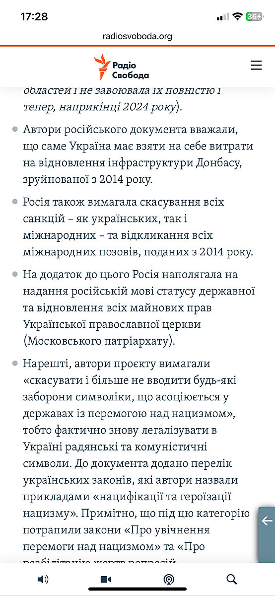 Уже з´явилась інформація що це самі перші умови які росія видвинула нам 7.03.22 але потім їх помякшила. Наприклад, вона згодна була відійти на кордони 24.02.2022. Думаю і інші умови були пом´якшені з часом.. а ці умови навмисне просочились в ЗМІ саме ЗАРАЗ, бо дуже багато людей ставили питання чому зелень пішов з-за столу перемовин