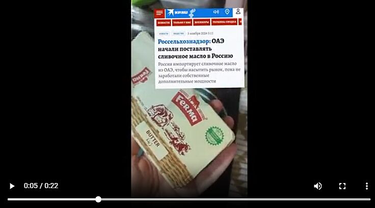 Поскольку путинская ’сверхдержава’ уже не способна проивзодить даже сливочное масло, начался импорт масла из Труции и ОАЭ, но есть нюанс)))