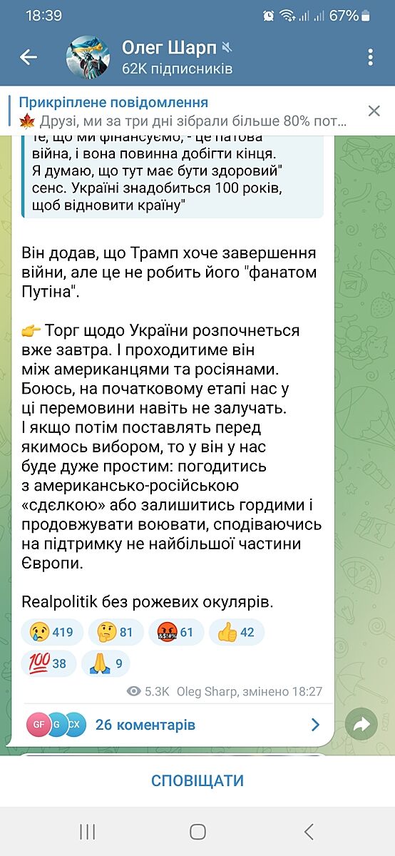 Вы как будто из другой планеты прилетели и не понимали этого ранее. Что нашей власти эта война была выгодна: помощь дают, можно воровать сколько хочешь, администрация Байдена закрывала на это глаза, лишь бы мы воевали и ослабляли россию. Я тоже верю, что Трамп эту лавочку прикроет, да нам будет тяжело, но наконец-то нашим зеленым прийдется сворачивать эту войну, а не воевать до останнього.