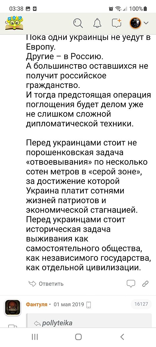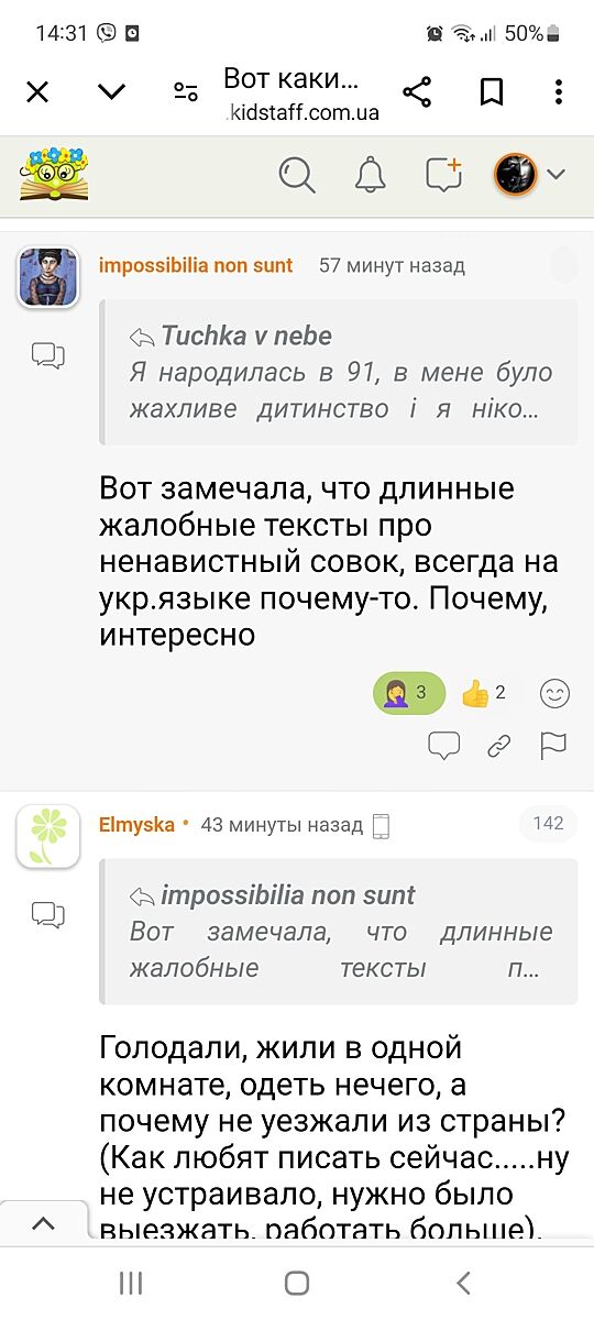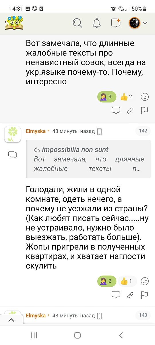 В одной теме пишет, что родина СССР её распалась, она передила, все нормально, спрашивает у оппонентов, а чем плоха оккупация страны, чего лично вы боитесь, пишет о страшной украинизации и о том, что Украина оккупировала Закарпатье.