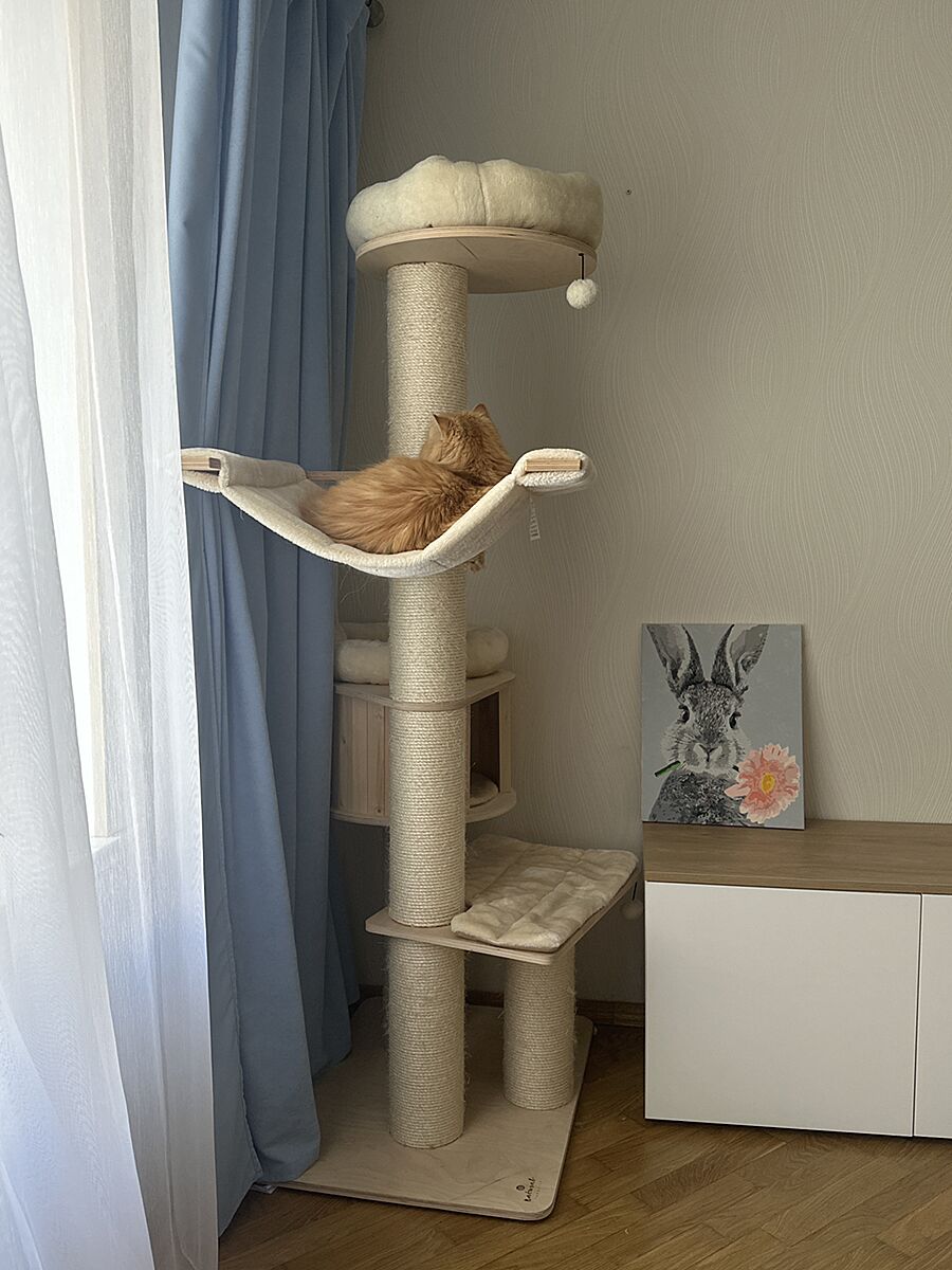 Мої вусаті ходять на вулицю, але спати хочуть в ліжку. І то була проблема. Вирішила питання, подарував кожному по гамаку. Можу легко перечепити в інше місце, щоб їм не набридало, міняти локацію, але стільці, дивани та ліжка котів вже не цікавлять.