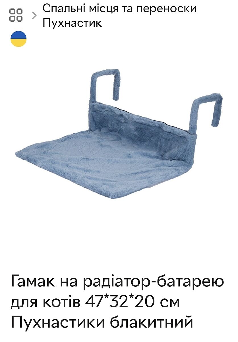 Ось, кому буде цікаво. Хутро дуже приємне, липучка тримає міцно, можна знімати у прати в машині. Я накрила зверху тими речами, на яких вусаті люблять спати, щоб звикли. Кицька вподобала майже одразу, сама залізла й залишилася там на всю ніч. Кіт декілька днів спостерігав, потім поліз на її гамак, а вусата перебралася на новий. Нарешті я не бігаю з пилососом по всіх кімнатах. Бо вуличні коти своїми лапами наносять купу бруду з двору.