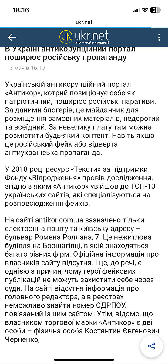 А антикор це передав в цьому руслі. Це є інформ війна, взяти правду типу про ресторан, може бути, і приліпити її до Нац гвардіі, це свідома маніпуляція фактами.