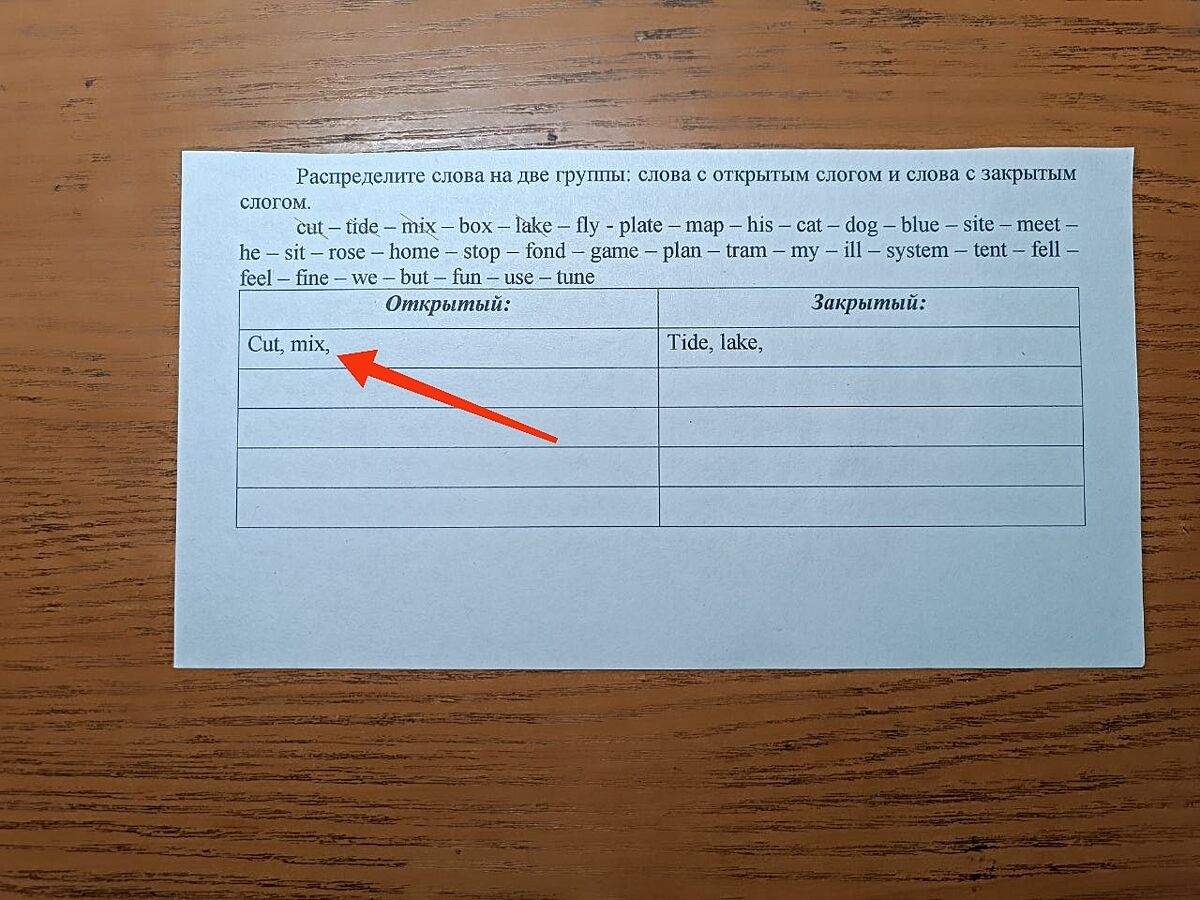 Посмотрите, здесь вы ошибку видите? Слова mix cat указаны как слова с открытым слогом